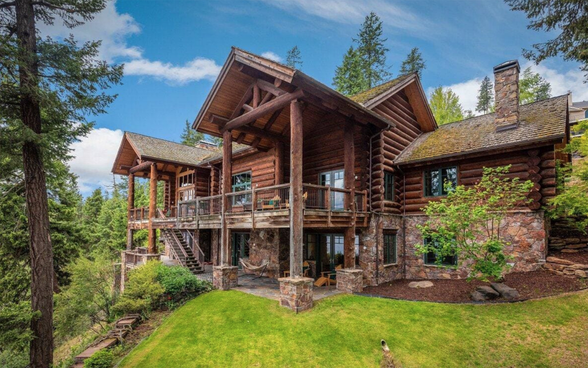 Nestled in the desirable gated community of Stevens Point Estates in Coeur d’Alene, this custom ”Lincoln Log” masterpiece rests on 1.3 acres with 302 feet of private waterfront, a tram system, and a 2-slip dock. Built to last with a commercial foundation, this extraordinary lakeside retreat is teeming with detail — from friction-fitted kiln-dried Douglas fir logs and heated Montana stone floors to five stonework fireplaces, rainforest cedar doors from Bolivia, and much more. The home boasts over 10,700 square feet, with seven bedrooms, six-plus baths, a dream chef’s kitchen, a private master suite retreat with a cantilevered tub, and ample living and entertaining space. An expansive covered deck sets the stage for enjoying gorgeous lake and mountain views. An oversize 3-car garage and a private gated entry elevate it for the luxury buyer.