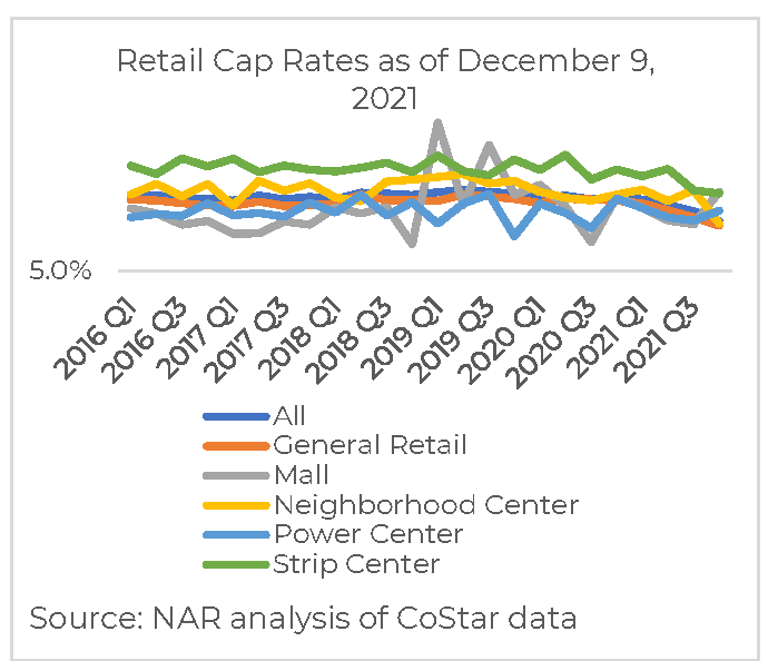 General retail sales make up the majority of all retail sales as this assets sales volume totals 60% of all retail sales in Q4 as of December 9. YTD through Q4 2021, of the $66.2 billion all retail sales volume, general retail sales share was 65%, malls (4.2%), neighborhood centers (20.2%), power centers (4.5%) and strip centers (5.7%).