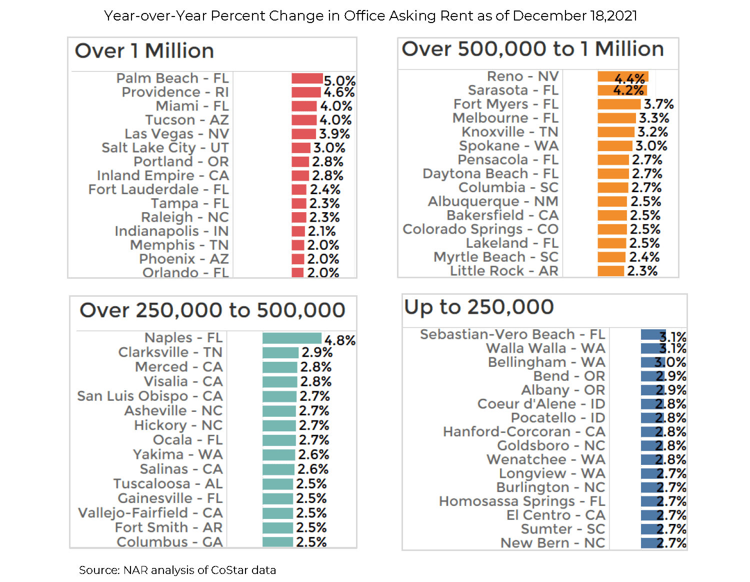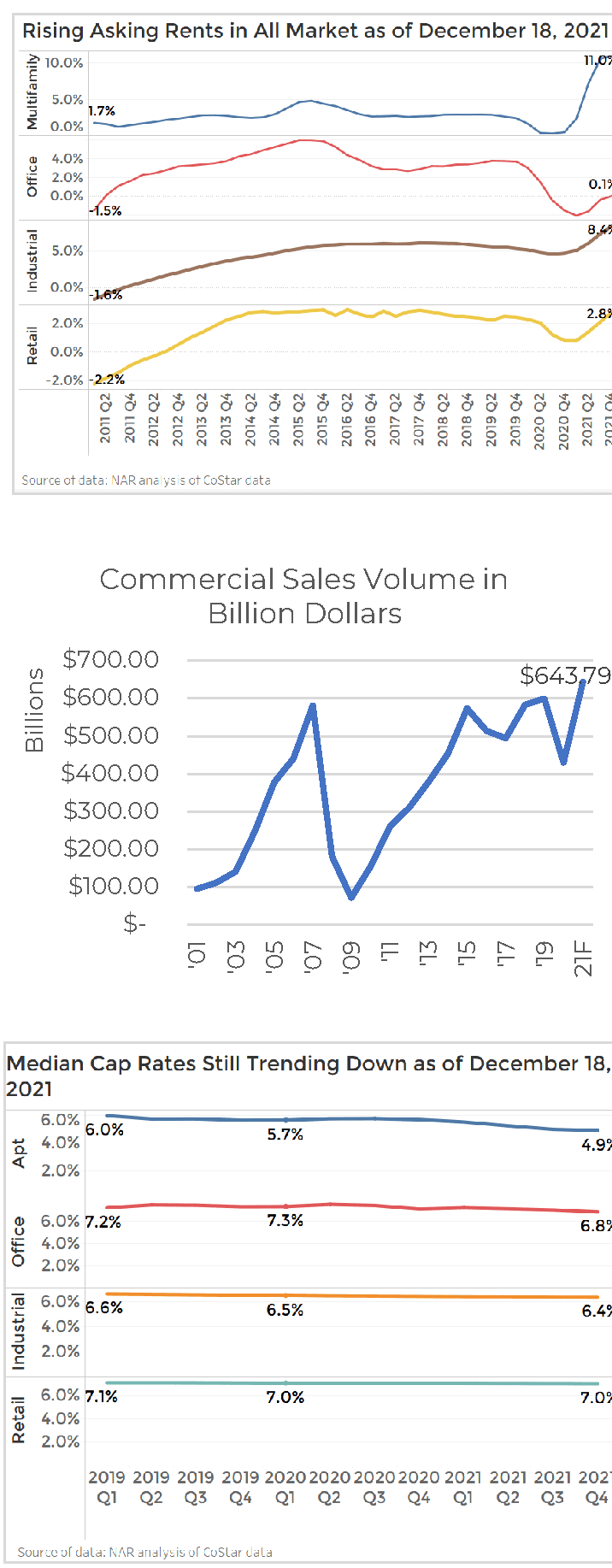 NAR expects the demand for commercial real estate to strengthen in 2022, even with the broad uptick in interest rates as the Federal Reserve moves aggressively to rein back inflation towards 2% given the strong demand and supply fundamentals underlying the demand for commercial real estate.