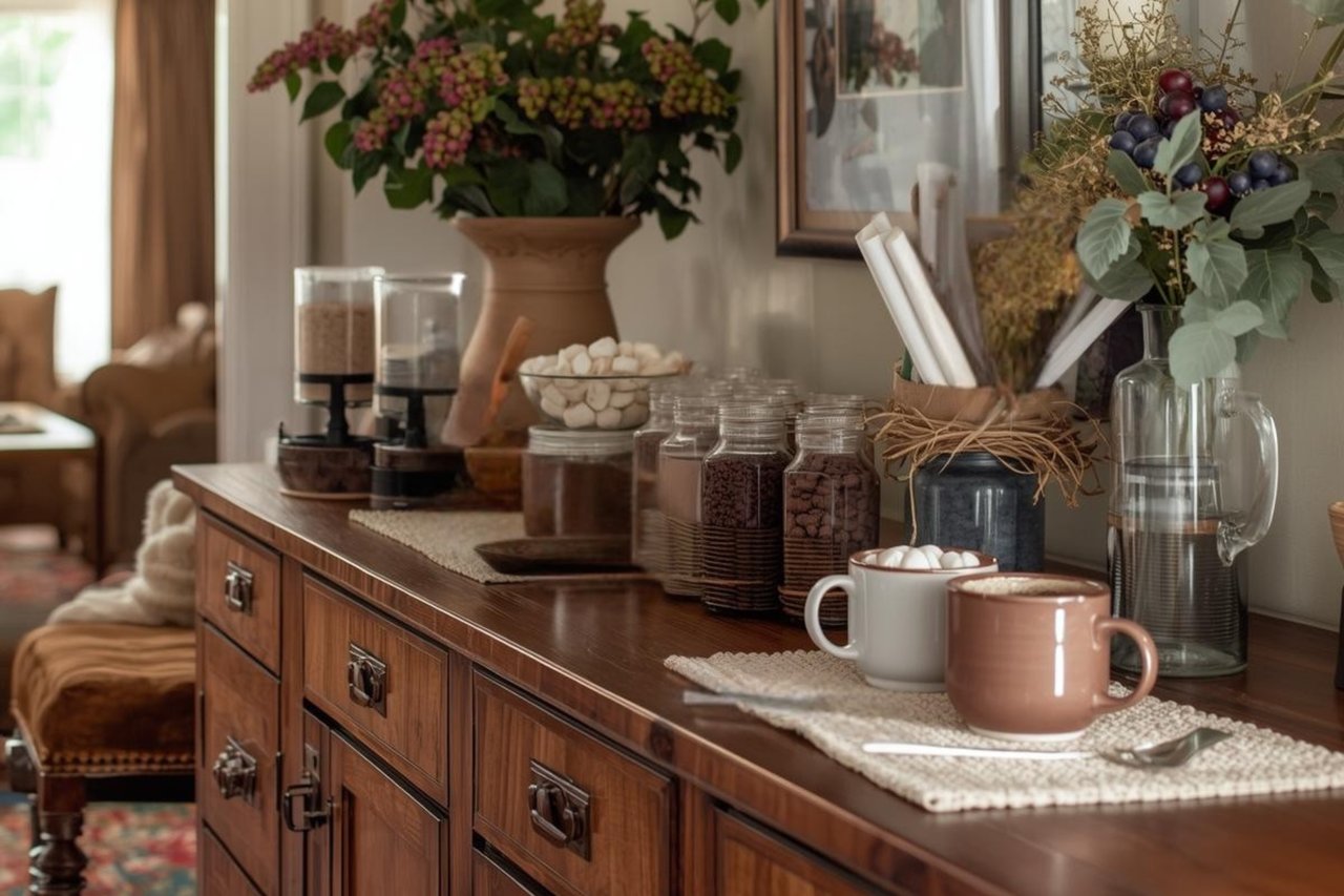 Create a cocoa or wine bar using a tray on your kitchen counter