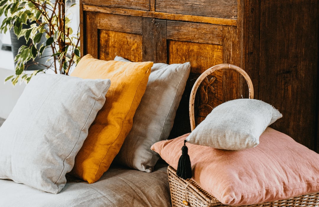 Natural fabrics in unique artisan patterns complement the seasonal look-and-feel without overpowering your home. Consider hanging a woven rug on a feature wall. It will add warmth to the room, and you can match it to the floor rug and throw cushions.