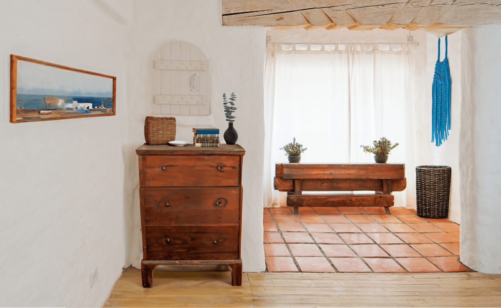 Furniture in Mediterranean homes is often sturdy, rustic, and well-loved. Antique pieces or furniture with a distressed finish can add to the overall aesthetic. Look for pieces made from wood, metal, or leather, and don't be afraid to mix and match – part of the charm of Mediterranean design is its sense of eclecticism.