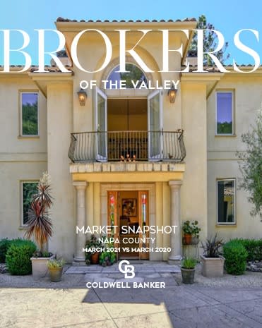 Napa County Market Snapshot March 2021 compared to March 2020 Our Market Snapshot for Napa County is now available for the month of March. This monthly report offers statistical data on the Napa County real estate market comparing March of this year and March of 2020. |